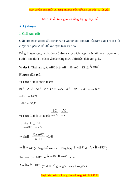 Đây là bản xem th , vu ử i lòng mua tài li u ệ đ xe ể m chi ti t (c ế ó l i ờ gi i ả ) C 18 0 A B C 180 60 44 7 6 V y ậ BC ≈ 40,11; B 4 4 và C 7 6 . 2. Áp d ng gi ụ i