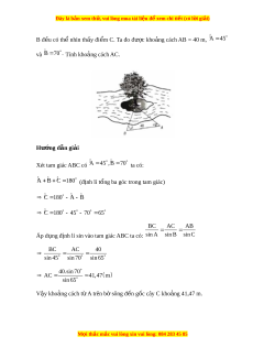 Bài 2. Để đo kho ng ả cách từ m t ộ đi m ể A trên b ờ sông đ n ế g c ố cây C trên cù lao gi a ữ sông, ngư i ờ ta ch n ọ m t ộ đi m ể B cùng ở trên b ờ v i ớ A sao cho t ừ A và M i ọ thắc m c