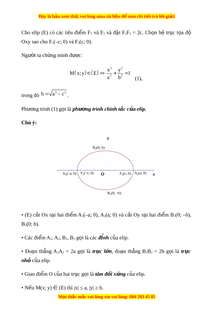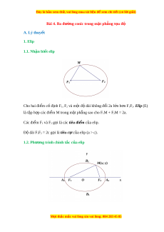 Đây là bản xem th , vu ử i lòng mua tài li u ệ đ xe ể m chi ti t ế (có l i ờ gi i ả ) Bài 4. Ba đư ng coni ờ c trong m t ặ ph ng t ẳ a đ ọ ộ A. Lý thuy t ế 1. Elip 1.1. Nhận bi t ế elip Cho hai đi m ể cố đ nh ị F1, F2 và m t ộ đ ộ dài không đ i ổ 2a l n ớ h n