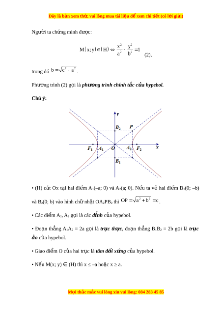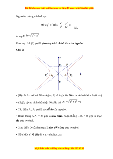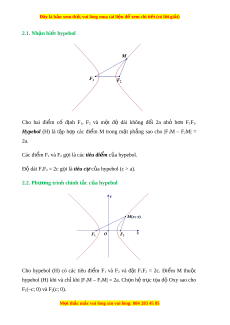 Đây là bản xem th , vu ử i lòng mua tài li u ệ đ xe ể m chi ti t (c ế ó l i ờ gi i ả ) 2.1. Nhận bi t ế hypebol Cho hai đi m ể cố đ nh ị F1, F2 và m t ộ độ dài không đ i ổ 2a nhỏ h n ơ F1F2.