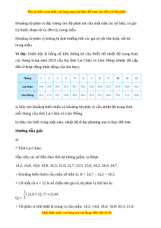Đây là bản xem th , vu ử i lòng mua tài li u ệ đ xe ể m chi ti t (c ế ó l i ờ gi i ả ) Kho ng ả t phân v ứ đ ị c ặ tr ng cho đ ư ộ phân tán c a m ủ t ộ n a ử các s l ố i u, có gi ệ á trị thu c ộ đo n t ạ Q ừ 1 đ n Q ế 3 trong mẫu. Kho ng ả t phân v ứ không b ị ị nh h ả ư ng ở b i ở các giá tr r ị t ấ l n ho ớ c ặ r t ấ bé trong mẫu. Ví d : ụ Dư i ớ đây là b ng ả số li u ệ th ng ố kê c a ủ Bi u ể đồ nhi t ệ độ trung bình