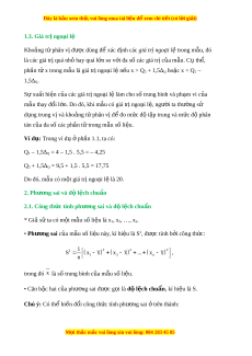 Đây là bản xem th , vu ử i lòng mua tài li u ệ đ xe ể m chi ti t (c ế ó l i ờ gi i ả ) 1.3. Giá tr ngo ị i ạ l ệ Kho ng ả t phân v ứ đ ị ư c dùng đ ợ ể xác đ nh các ị giá trị ngo i ạ l ệ trong mẫu, đó là các giá tr quá nh ị ỏ hay quá l n s ớ o v i ớ đa số các giá tr c ị a m ủ u. C ẫ ụ th , ể phần t x t ử rong m u l ẫ à giá tr ngo ị i ạ l n ệ u x > Q ế 3 + 1,5∆Q ho c x < Q ặ 1 – 1,5∆Q. S xu ự ất hi n c ệ a các ủ giá tr ngo ị i ạ l l