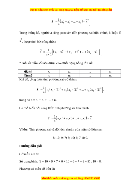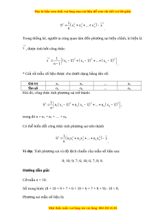 trong đó x là số trung bình c a m ủ u s ẫ ố li u. ệ • Căn b c ậ hai c a ph ủ ư ng ơ sai đư c ợ g i ọ là đ l ộ ch chu ệ n ẩ , kí hi u l ệ à S. Chú ý: Có th bi ể n đ ế ổi công th c t ứ ính phư ng ơ sai t ở rên thành: M i ọ thắc m c