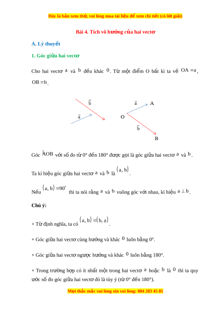 Bài 4. Tích vô hư ng c ớ a ha ủ i vectơ A. Lý thuy t ế 1. Góc gi a h ữ ai vectơ