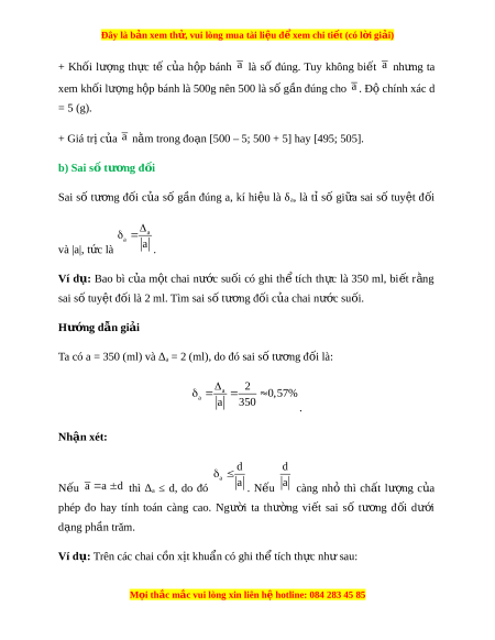 sai s tuy t đ i là 2 ml. Tìm sai s t ng đ i c a chai n c su i. ố ệ ố ố ươ ố ủ ướ ố