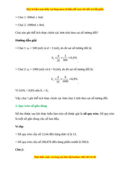 Đây là bản xem th , vu ử i lòng mua tài li u ệ đ xe ể m chi ti t (c ế ó l i ờ gi i ả ) + Chai 1: 500ml ± 3ml; + Chai 2: 1000ml ± 8ml. Chai nào ghi th t ể ích th c chí ự nh xác h n t