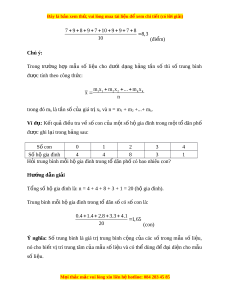 7 9 8 9 7 10 9 9 7 8 8 ,3 10 (đi m ể ) Chú ý: Trong trư ng ờ h p ợ m u ẫ số li u ệ cho dư i ớ d ng ạ b ng ả t n ầ số thì số trung bình đư c ợ tính theo công th c: ứ m x m x ... m x 1 1 2 2 k k x n