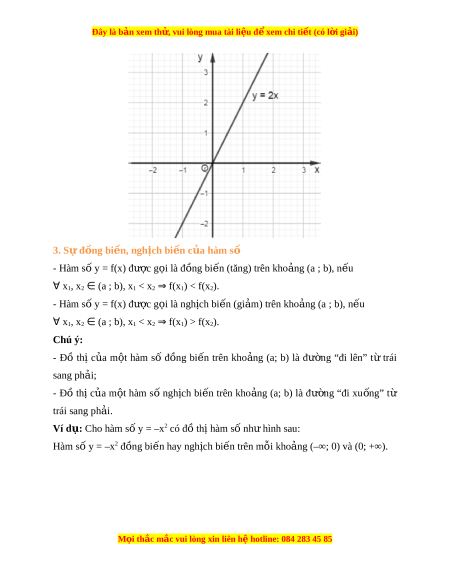 Đây là bản xem th , vu ử i lòng mua tài li u ệ đ xe ể m chi ti t (c ế ó l i ờ gi i ả ) 3. Sự đ ng bi ồ n, n ế gh ch bi ị n c ế a hà ủ m số - Hàm số y = f(x) đư c g ợ i ọ là đ ng bi ồ n ( ế tăng) trên kho ng ả (a ; b), n u ế