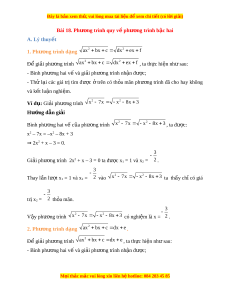 Đây là bản xem th , vu ử i lòng mua tài li u ệ đ xe ể m chi ti t (c ế ó l i ờ gi i ả ) Bài 18. Phư ng t ơ rình quy v ph ề ư ng ơ trình b c hai ậ A. Lý thuy t ế 1. Phư ng ơ trình d ng ạ 2 2