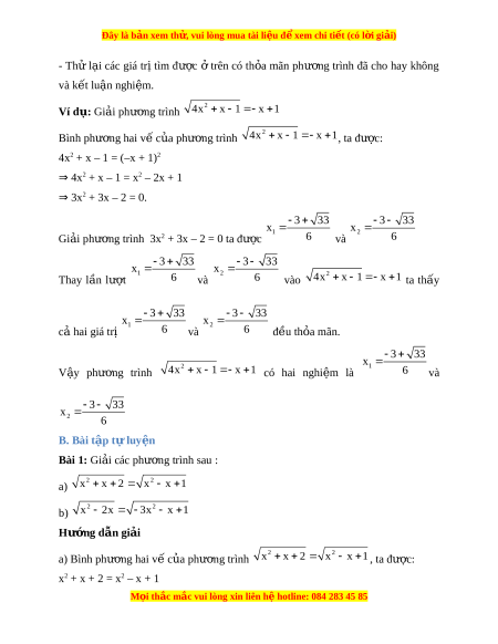 b) x 2x 33 x x 5 . Hư ng d ớ ẫn gi i ả a) Bình phư ng ơ hai v c ế a ủ phư ng t ơ 2