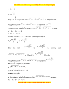 ơ trình 4x2 – x – 1 = 0 có hai nghi m ệ phân bi t ệ là 1 17 1 17 x x 1 8 2 và 8 . 1 17 1 17 x x 1 2 Thay l n ầ lư t ợ 8 và 8 vào phư ng ơ trình 1 17 x 2 2 x 2x 3x x 1 2 ta th y ch ấ có ỉ 8 th a ỏ mãn. 1 17 x V y ậ phư ng t ơ 2 2