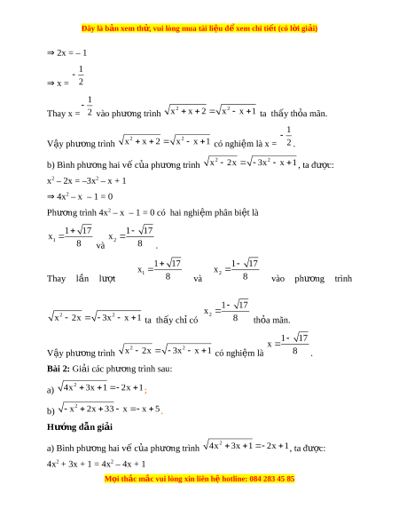 Đây là bản xem th , vu ử i lòng mua tài li u ệ đ xe ể m chi ti t (c ế ó l i ờ gi i ả ) ⇒ 2x = – 1 1 ⇒ x = 2 1 Thay x = 2 vào phư ng ơ 2 2