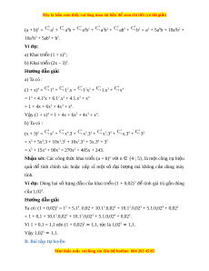 ậ (x + 4)5 + (x – 4)5 = 2x5 + 320 x3 + 2560x. Bài 2 : a) Dùng hai số h ng ạ đ u ầ c a ủ khai tri n