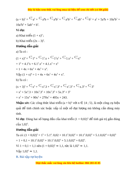 Đây là bản xem th , vu ử i lòng mua tài li u ệ đ xe ể m chi ti t (c ế ó l i ờ gi i ả ) 0 1 2 3 4 5 (a + b)5 = C C C C C C