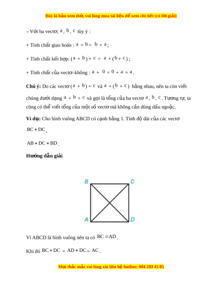 Đây là bản xem th , vu ử i lòng mua tài li u ệ đ xe ể m chi ti t (c ế ó l i ờ gi i ả ) – V i ớ ba vect ; ơ a , b , c tùy ý : + Tính ch t