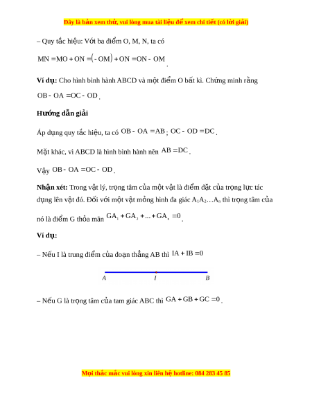 ỏ mãn GA GA ... GA 0 1 2 n . Ví d : ụ – N u ế I là trung đi m ể c a đo ủ n ạ th ng ẳ AB thì IA IB 0 – N u ế G là tr ng t ọ âm c a