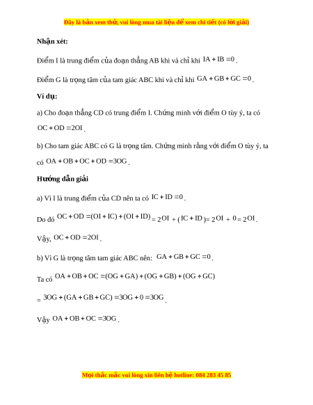 Đây là bản xem th , vu ử i lòng mua tài li u ệ đ xe ể m chi ti t (c ế ó l i ờ gi i ả ) Nhận xét: Đi m ể I là trung đi m ể c a đo ủ n ạ th ng ẳ AB khi và ch khi ỉ IA IB 0 . Đi m ể G là tr ng t ọ âm c a