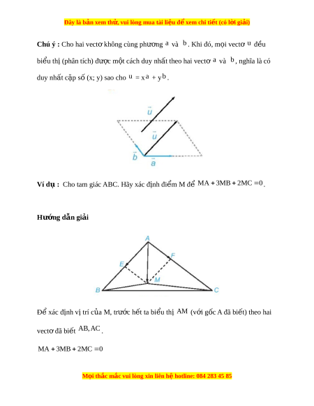 Chú ý : Cho hai vectơ không cùng phư ng ơ a và b . Khi đó, m i ọ vectơ u đ u ề bi u t ể hị (phân tích) đư c ợ m t ộ cách duy nh t ấ theo hai vect ơ a và b , nghĩa là có duy nhất c p ặ s (