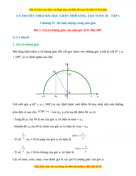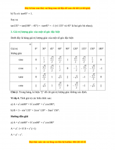 Bài 1. Giá trị lượng giác của một góc từ 0° đến 180° A. Lý thuyết