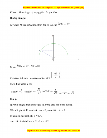 Ví dụ 1. Tìm các giá trị lượng giác của góc 150°. Hướng dẫn giải