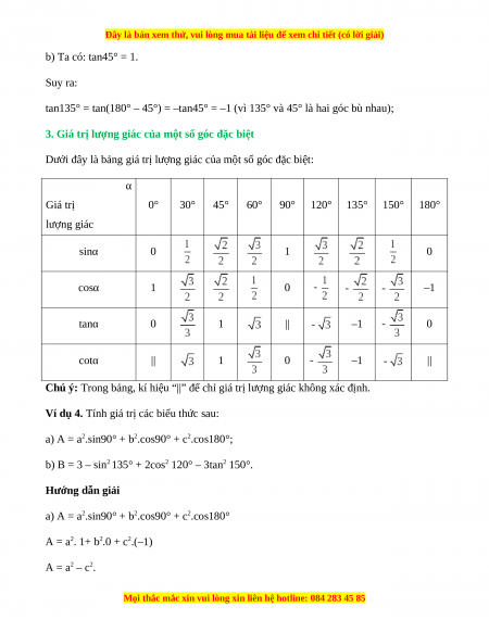3. Giá trị lượng giác của một số góc đặc biệt