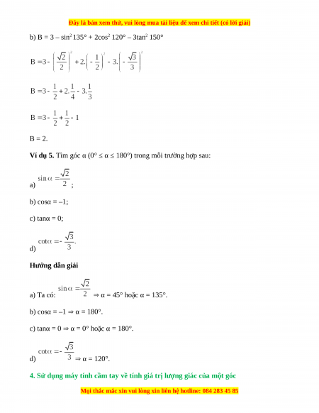 b) B = 3 – sin2 135° + 2cos2 120° ‒ 3tan2 150°. Hướng dẫn giải