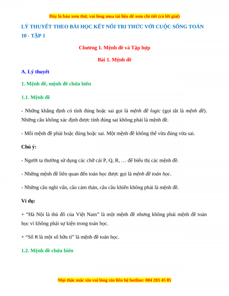 LÝ THUYẾT THEO BÀI HỌC KẾT NỐI TRI THỨC VỚI CUỘC SỐNG TOÁN 10 - TẬP 1