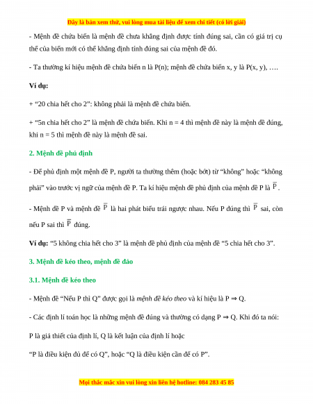 - Để phủ định một mệnh đề P, người ta thường thêm (hoặc bớt) từ “không” hoặc “không