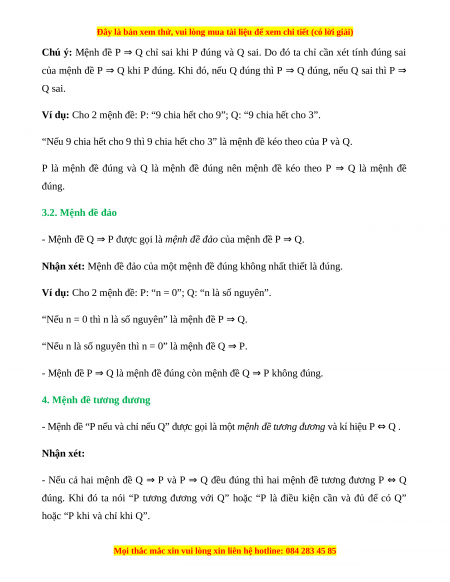 - Nếu cả hai mệnh đề Q ⇒ P và P ⇒ Q đều đúng thì hai mệnh đề tương đương P ⇔ Q