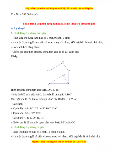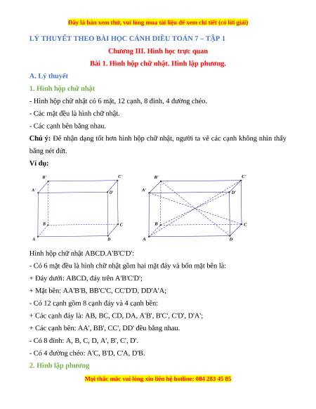 Bài 1. Hình hộp chữ nhật. Hình lập phương. A. Lý thuyết