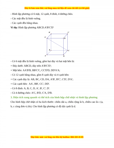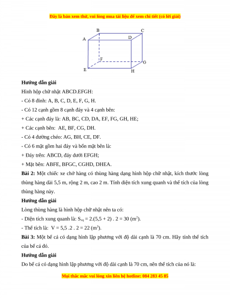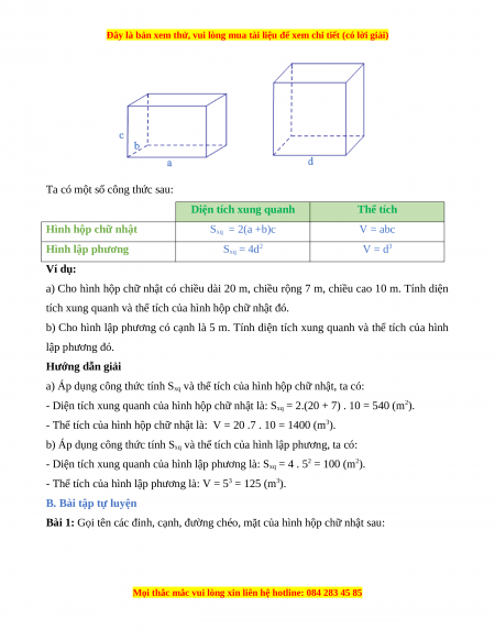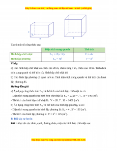 3. Diện tích xung quanh và thể tích của hình hộp chữ nhật và hình lập phương