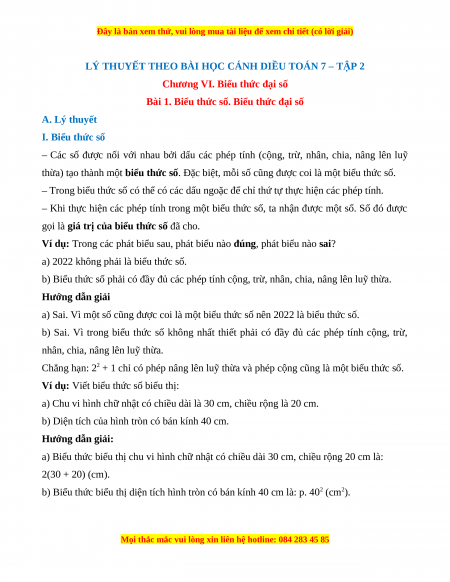 Lý thuyết Toán 7 Cánh diều Chương 6: Biểu thức đại số