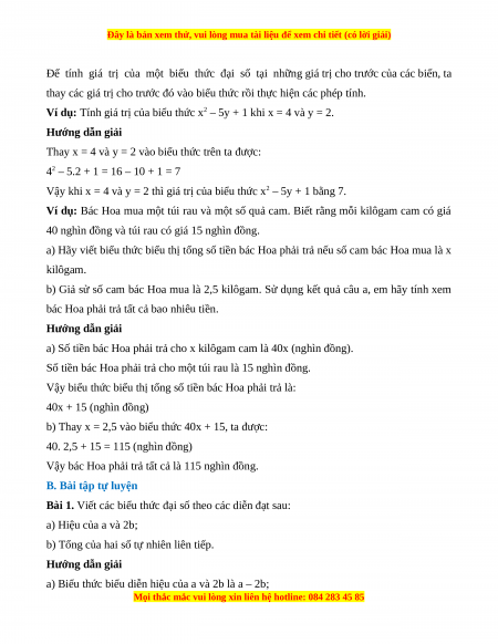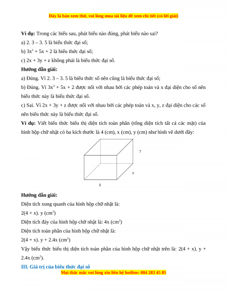 c) 2x + 3y + z không phải là biểu thức đại số. Hướng dẫn giải: