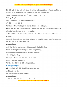– Biểu thức gồm các số và các biến số (đại diện cho số) được nối với nhau bởi các kí