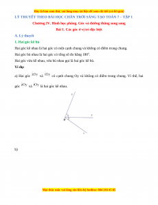 Bài 1. Các góc ở vị trí đặc biệt A. Lý thuyết 1. Hai góc kề bù