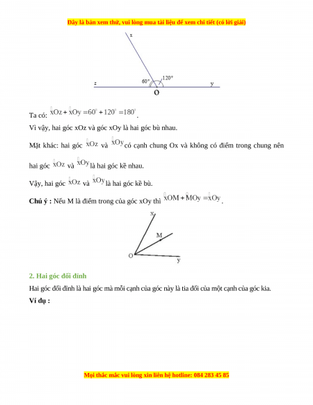 có cạnh chung Ox và không có điểm trong chung nên hai góc và là hai góc kề nhau. Vậy, hai góc và là hai góc kề bù.