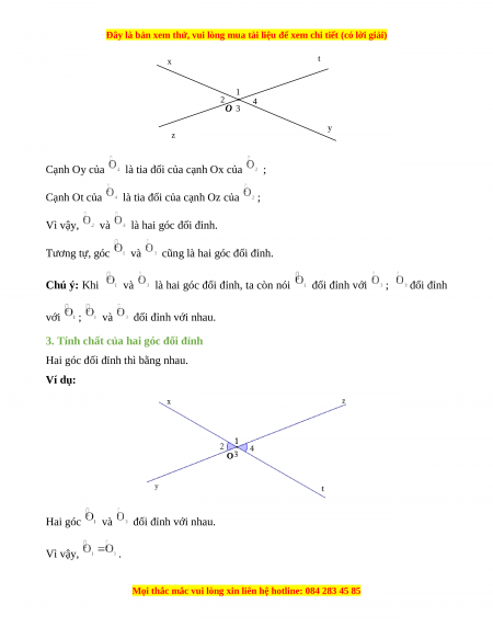 cũng là hai góc đối đỉnh. Chú ý: Khi và