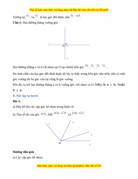 Vì vậy, hai góc xOz và góc xOy là hai góc bù nhau. Mặt khác: hai góc và