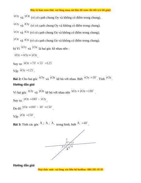 a) Hãy kể tên các cặp góc kề nhau trong hình vẽ. b) Tìm số đo của góc , biết và . y x z O t Hướng dẫn giải a) Các cặp góc kề nhau: