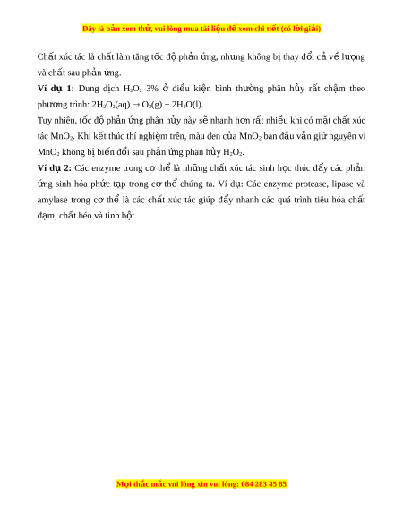 ệ độ tăng từ 20oC lên 60oC thì: 2 T 1 T 60 20 v ( ) ( ) 1 4 10 10 2 2 16 v2 Tốc đ ph ộ n ả ng t ứ ăng lên 16 l n. ầ 5. Ảnh hư ng c ở a ch ủ t ấ xúc tác M i ọ thắc m c