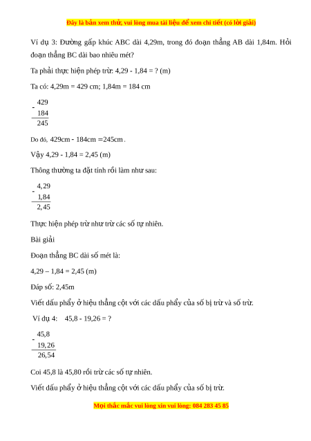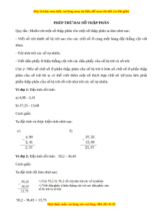 Đây là bản xem th , vu ử i lòng mua tài li u ệ đ xe ể m chi ti t ế (có l i ờ gi i ả ) PHÉP TRỪ HAI S Ố THẬP PHÂN Quy t c: ắ Muốn tr m ừ t ộ số th p phân ậ cho m t ộ s t ố h p phân ậ ta làm nh s ư au: - Vi t ế số trừ dư i