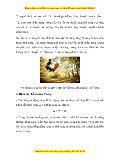 thành thế năng. Tuy nhiên trong quá trình di chuy n, ể m t ộ ph n ầ năng lư ng ợ chuy n ể hóa thành năng lư ng ợ nhi t ệ và năng lư ng ợ âm thanh d n ẫ đ n ế tàu không th di ể chuy n l ể ên đ nh s ỉ au có đ cao b ộ ng ằ đ nh t ỉ rư c ớ đó. Trò ch i ơ xích đu mà m t ộ ví dụ v s ề ự chuy n hóa đ ể ng năng – t ộ h năng ế 2. Đ nh l ị u t ậ b o t ả oàn c năng ơ - Thế năng và đ ng ộ năng là hai d ng ạ c a ủ cơ năng. Cơ năng W c a ủ m t ộ v t ậ b ng t ằ ổng th năng ế Wt và đ ng ộ năng Wđ c a ủ nó W = Wt + Wđ - Trong các trư ng ờ h p ợ mà ma sát r t ấ nh ,