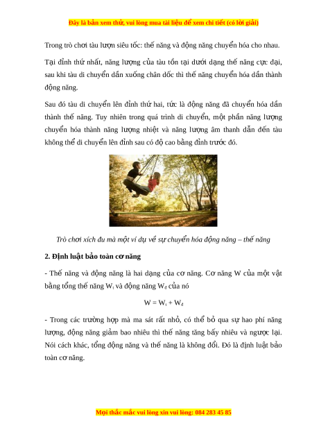 Đây là bản xem th , vu ử i lòng mua tài li u ệ đ xe ể m chi ti t ế (có l i ờ gi i ả ) Trong trò ch i ơ tàu lư n s ợ iêu t c: ố th năng và đ ế ng năng chuy ộ n ể hóa cho nhau. T i ạ đ nh ỉ thứ nh t ấ , năng lư ng ợ c a ủ tàu t n ồ t i ạ dư i ớ d ng ạ thế năng c c ự đ i ạ , sau khi tàu di chuy n ể d n ầ xu ng ố chân d c ố thì th ế năng chuy n ể hóa d n ầ thành đ ng năng. ộ Sau đó tàu di chuy n ể lên đ nh ỉ thứ hai, t c ứ là đ ng ộ năng đã chuy n ể hóa d n ầ