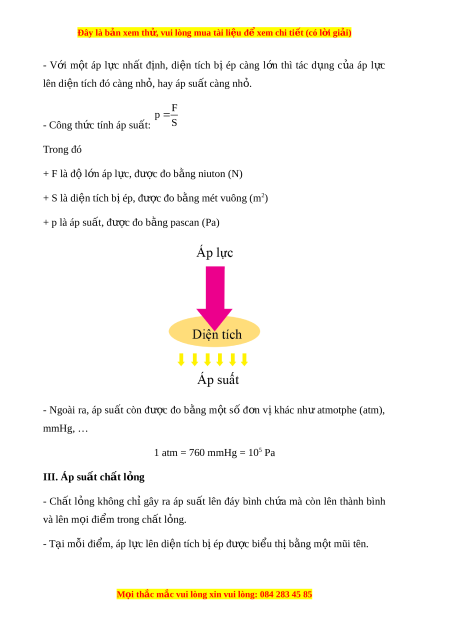 Đây là bản xem th , vu ử i lòng mua tài li u ệ đ xe ể m chi ti t (c ế ó l i ờ gi i ả ) - V i ớ m t ộ áp l c ự nh t ấ đ nh, ị di n ệ tích bị ép càng l n ớ thì tác d ng ụ c a ủ áp l c ự
