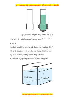 Đây là bản xem th , vu ử i lòng mua tài li u ệ đ xe ể m chi ti t ế (có l i ờ gi i ả ) Áp l c ự do ch t ấ l ng ỏ tác d ng l ụ ên b m ề t ặ b ép ị - Áp suất c a ch ủ ất l ng t ỏ i ạ đi m ể có đ s ộ âu h: p p gh o Trong đó + p 2 o là áp su t ấ khí quy n t ể rên m t ặ thoáng c a ch ủ t ấ l ng ( ỏ N/m ) + h là đ s ộ âu c a đi ủ m ể ta xét đ n ế m t ặ thoáng ch t ấ l ng ( ỏ m) + g là gia tốc tr ng t ọ rư ng t ờ i ạ n i ơ đang xét (m/s2) + là khối lư ng r ợ iêng c a ch ủ t ấ l ng đang ỏ xét (kg/m3) M i