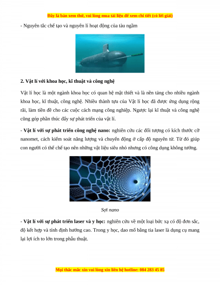 - Vật lí với sự phát triển công nghệ nano: nghiên cứu các đối tượng có kích thước cỡ
