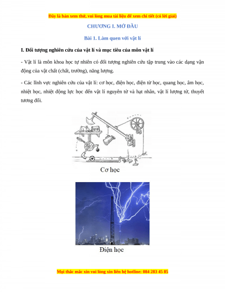 I. Đối tượng nghiên cứu của vật lí và mục tiêu của môn vật lí
