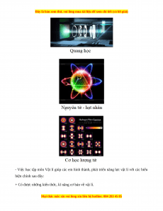 - Các lĩnh vực nghiên cứu của vật lí: cơ học, điện học, điện từ học, quang học, âm học,
