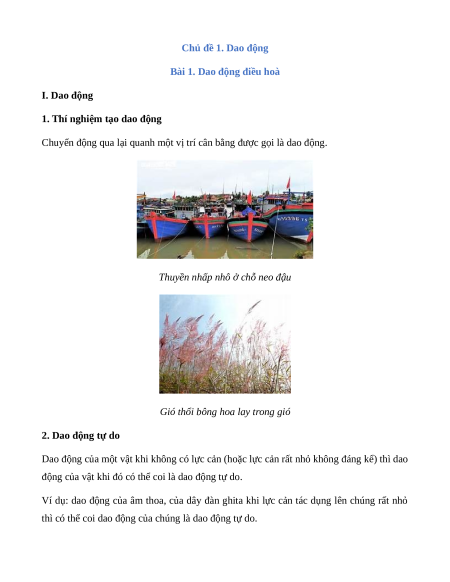 Gió thổi bông hoa lay trong gió 2. Dao động tự do