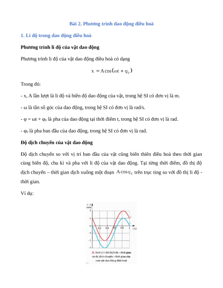 Li độ, biên độ, chu kì dao động, tần số dao động